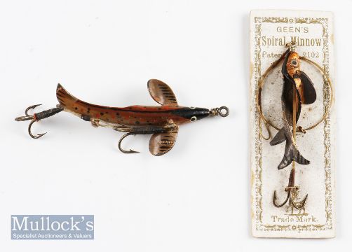 Geen’s Spiral Minnow – On original card together with Geen’s spinning bait Chase Me boxed (2)