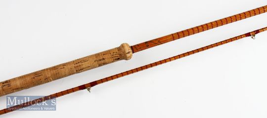 Fine B James & Son England Richard Walker Mk IV split cane carp rod – 10ft 2pc with red Agate lined butt and tip guides, 28” onion style cork handle with alloy sliding reel fittings - handle lightly soiled, otherwise overall (VG)- in a Milbro cloth bag.