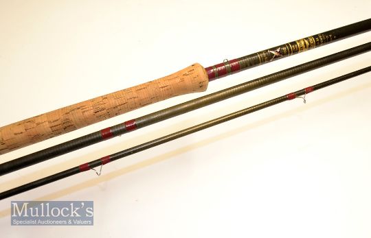 Bruce and Walker “Bruce Cordon Bleu” carbon salmon fly rod: 13’6” 3pc hand built-Fuji style lined butt and tip guides-alloy sliding reel fitting-handle slightly soiled (used in MCB