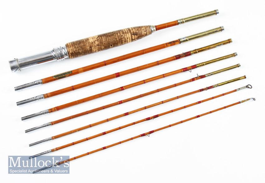 G.M Skinners (Canada) split cane travel fly rod– 7ft 7pc c/w spare tip with alloy screw locking reel fittings – one guide missing to the 2nd section – used with some intermediate whippings missing – in fitted cloth bag