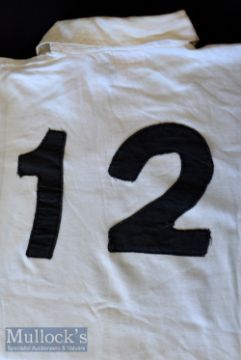 1975-6 Match worn NW Counties v Australia Rugby Jersey: Tony Bond wore this white No. 12 jersey with a distinctive badge and washed-out light mudstains in the game at Blundellsands lost 21-16 to the Wallabies. Lovely item in VG condition