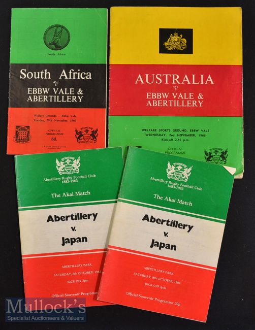 1960-1983 Tourists in Gwent Rugby Programmes (4): VG Editions from Ebbw Vale/Abertillery v S Africa 1960 & Australia 1966^ and two copies of Abertillery v Japan 1983