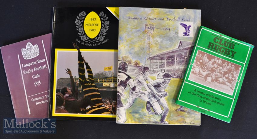 Rugby Histories & Brochures (4): Lovely quartet^ Welsh Club Rugby (Oriel Gallery & Paul Rees^ 1986); Lampeter RFC Centenary^ late 1970s; Swansea RFC large Centenary Brochure 1974; and Melrose 7s Centenary 1983. Very good