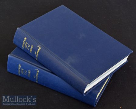 Bound 1990/91 and 1991/92 Chester City FC home football programmes from their time playing at Macclesfield Town^ bound in cloth bards with gilt to spine (2)