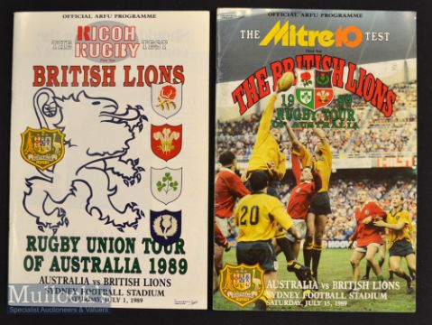 1989 British & Irish Lions to Australia Rugby Test Programmes (2): Pair of large attractive colourful issues from the Sydney (1st and 3rd) tests on the Lions’ series won 19-18 in the last clash. Very good