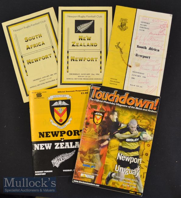 1952-2001 Newport v Tourists Rugby Programmes (5): Scarcer issues v South Africa 1952 (creased) & NZ 1954^ SA 1961 (heavily written cover)^ NZ 1989 & Uruguay 2001. Generally good or better