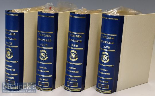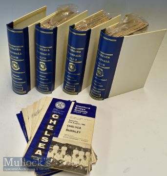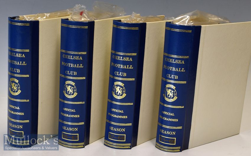 Collection of 1965-69 Chelsea home football programmes including 65/66 complete^ plus Leeds United FAC^ Shrewsbury Town FAC^ Hull City FAC^ AS Roma^ Wieners SC^ Milan AC^ TSV Munchen^ Barcelona + Fairs Cup^ plus England v Young England (31)^ 66/67 complete plus Brighton & Hove Albion FAC^ Sheffield United FAC^ Sheffield Wednesday FAC^ Charlton Athletic FLC^ Blackpool FLC^ London XI and Real Madrid (28)^ 67/68 complete plus Ipswich Town FAC^ Norwich City FAC^ Sheffield Wednesday FAC^ QPR^ (25)^ 68/69 complete plus Morton^ DWS Amsterdam^ Derby County FLC^ Carlisle United FAC^ Preston North End +Replay FAC^ Stoke City FAC^ West Bromwich Albion FAC^ Charlton Athletic Testimonial^ England v Young England (31)^ general condition is good^ within Chelsea folders (115)