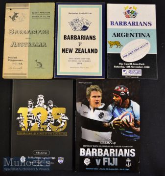 1948-2015 Barbarians v Tourists Rugby Programmes (5): The issues from games v Australia (1st such clash) 1948^ New Zealand 1978^ Argentina 1990 & 2015 (125 yrs Baabaas) and Fiji 2013 at either Cardiff or Twickenham. All except earliest VG or better condition