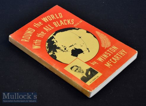 Scarce Rugby Book: 168 pp 1954 softback with striking cover^ ‘Round The World with the All Blacks’ by famous broadcaster Winston McCarthy. VG