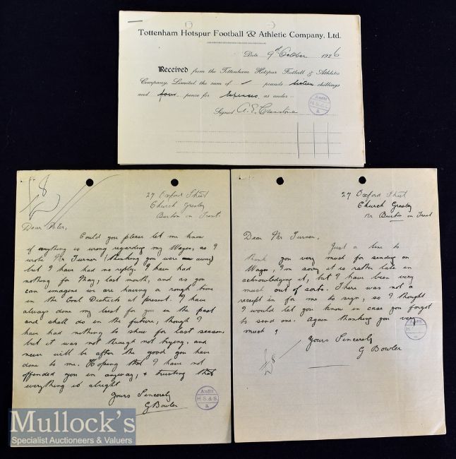 Tottenham Hotspur George Bowler Hand Written Letters signed to the end^ undated^ together with Tottenham Hotspur receipts for bus and taxi fares dates 1920s (8)