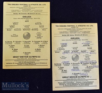 1963/64 Chelsea v Great Britain Olympic XI football programmes to include 16 Dec in good clean condition and 20 Jan with team changes in pen^ o/w in good condition^ both single sheet (2)