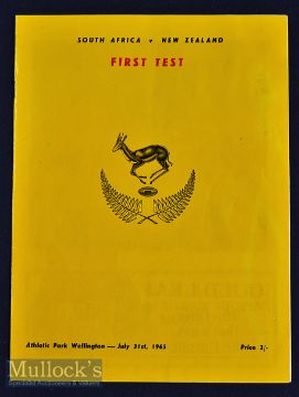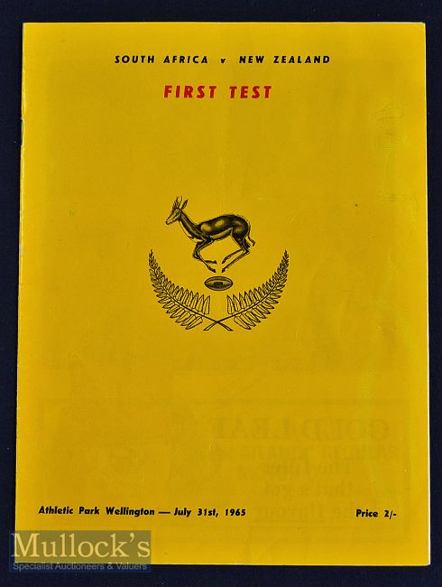 1965 New Zealand v S Africa Test Rugby Programme: Striking gold cover for this Wellington 1st Test issue from another famous series in the great southern hemisphere rivalry. Light creases o/wise good