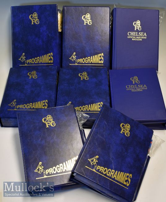 Complete Collection of 1995-99 Chelsea home football programmes consisting of 95/96 (25) plus yearbook^ 96/97 (25) plus yearbook^ 97/98 (28)^ 98/99 (27) includes league^ competitions and testimonials^ plus season tickets and various club correspondence^ all in as new condition within Chelsea folders (105) Box
