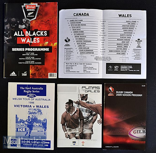 1996-2016 Wales Overseas Rugby Programmes (4): Harder to obtain quartet^ v Victoria (Australia) 1996^ Argentina 2004^ Canada 2009 and New Zealand (at Wellington) 2016. All in very good condition