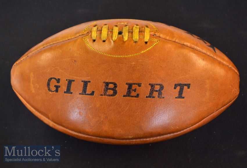 1980 England Squad Signed Gilbert Match Rugby Ball: 17 clear neat blue ball pen signatures from Bill Beaumont and their Grand Slam season to one panel of a lovely tan leather ball fully laced & in great condition 40 years on. Ideal for collection & display