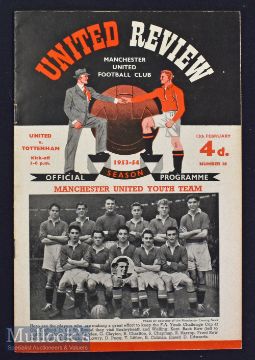 1954 Manchester United v Tottenham Hotspur football programme date 13 Feb^ a clean example