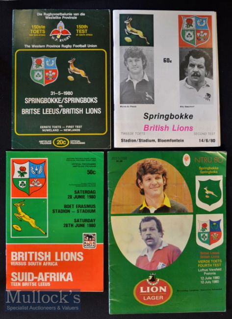 1980 British & Irish Lions in SA Rugby Test Programmes (4): Some harder to obtain^ the four issues - from Cape Town^ Bloemfontein^ Port Elizabeth & Pretoria. All large & VG