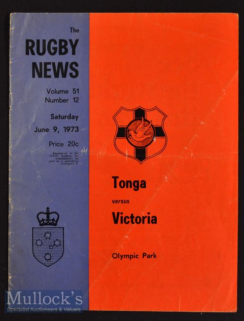 1973 Scarcer Victoria v Tonga Rugby Programme: Slightly marked 20pp issue from Olympic Park^ Melbourne