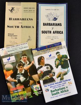 1952-2000 Barbarians v S Africa Rugby Programmes and tickets (6): The flimsier 1952 and standard 1961 (only Springbok defeat of tour) issues from Cardiff^ and the thick glossies from the first-ever Lansdowne Road^ Dublin visit of the Baa-baas to host the Boks in 1994^ and at Cardiff 2000^ both with ticket. VG/Exc
