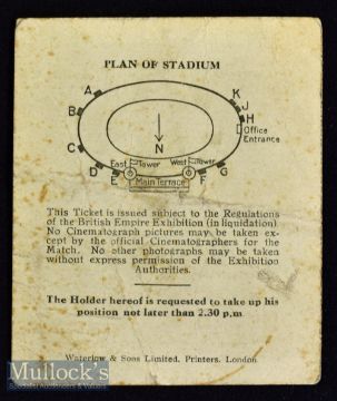 1926 FA Cup Final Football Ticket: Bolton Wanderers v Manchester City at Wembley 24th April 1926 condition overall creasing and slight slit to edge^ staining to back