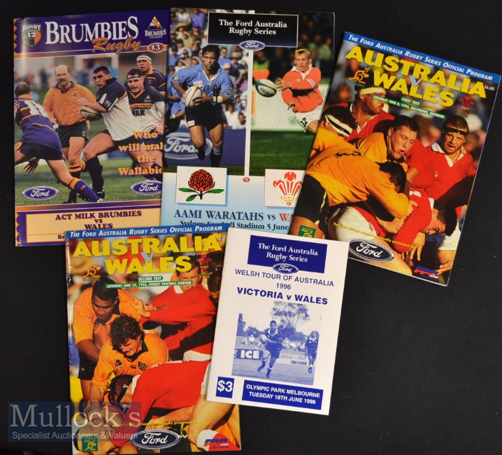 1996 Wales Tour of Australia Rugby Programmes (5): Five of the eight issues from this ill-fated trip^ including both tests^ ACT^ NSW and Victoria. Near mint
