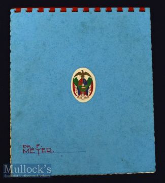 Transvaal Rugby Dinner Menu for the NZ All Blacks Touring Team 1960: Elaborate and most attractive 12pp card ring-bound menu marked for Dr F Meyer and from the after match dinner for the visitors after their match at Pretoria. Danie Craven and Tom Pearce spoke. VG