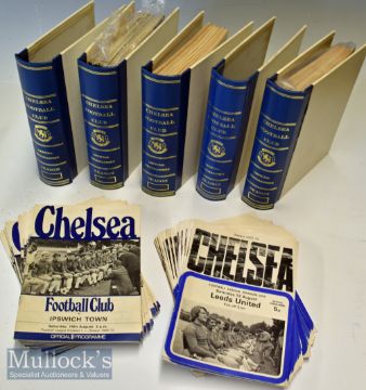 Collection of Chelsea 1969-74 home football programmes including 69/70 complete season^ league and competition (24)^ 70/71 complete season^ league^ ECWC and competitions (32)^ 71/72 complete^ plus testimonial^ Plymouth Arygle FLC and competitions (29)^ 72/73 complete season (26)^ 73/74 complete season and competitions^ plus Testimonial (24)^ general condition is overall good^ within Chelsea folders (135)