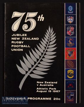 1967 NZ 75th Jubilee Match v Australia Rugby Programme: Excellent content and condition in this special issue for the Wellington clash with their Aussie neighbours