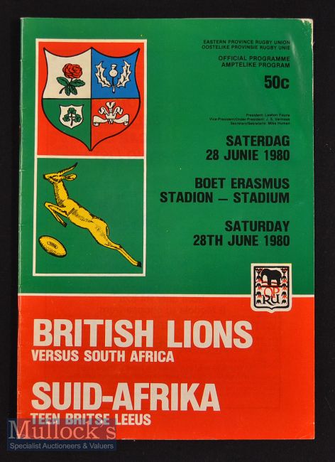 1980 British & Irish Lions to S Africa Rugby 3rd Test Programme: Slight wrinkle to corner^ o/wise VG Port Elizabeth issue for the third Test