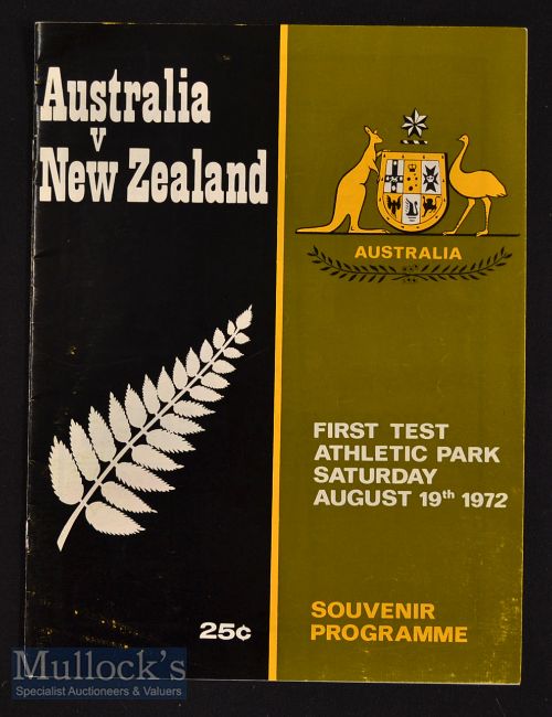 1972 New Zealand v Australia Test Rugby Programme: Large detailed edition for the 1st Test at Wellington^ pocket fold o/wise VG