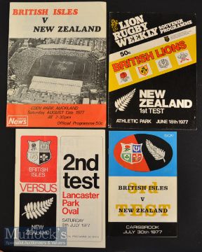 1977 British & Irish Lions in NZ Rugby Test Programmes (4): All four issues from the 3-1 Lions’ series defeat in the rainiest tour ever. Very good condition^ mostly large-format programmes
