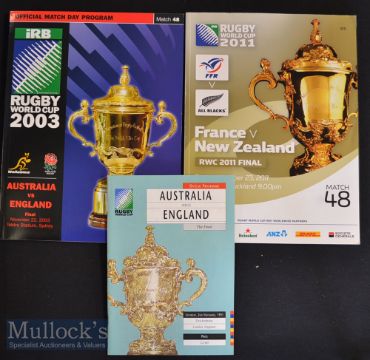 1991/2003/2011 Rugby World Cup Finals (3): The final issues from Twickenham in 1991^ Sydney in 2003 (England loss and win v Australia) & New Zealand’s win over France in Auckland in 2011. Near Mint^ memorable matches!
