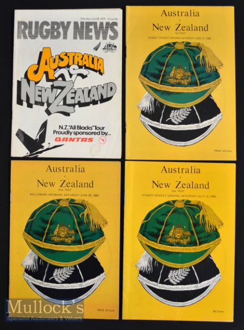 1979/1980 Australia v New Zealand Test Rugby Programmes (4): Compact attractive issues^ from the Test at Sydney in 1979 and all three from the 1980 tour^ 1st and 3rd at Sydney^ 2nd at Brisbane. All G/VG