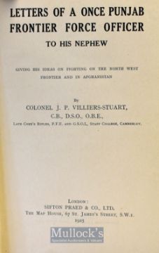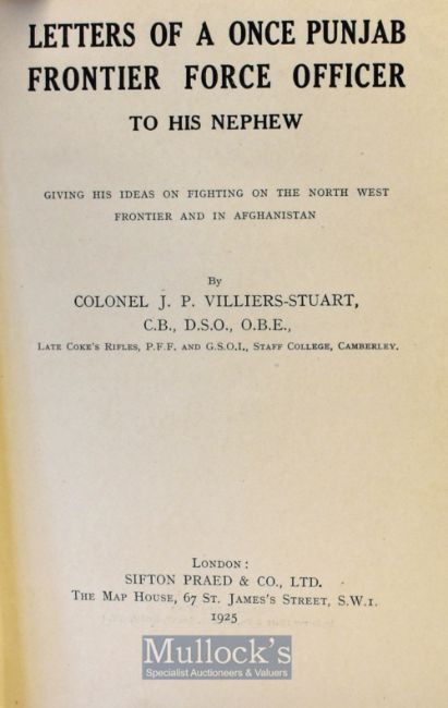 Letters Of A Once Punjab Frontier Force Officer To His Nephew Giving his ideas on fighting on the North West Frontier and in Afghanistan By Colonel J P Villiers-Stuart London: Sifton Praed & Co. 1925 pp. viii, 86. A fascinating study of the brutality of combat in the region with sections dealing with the most efficient way to destroy villages, etc. Lacks one folding sheet (Diagram of Advance) from the rear pocket.