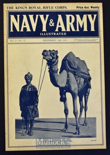 India - A Sikh Warrior and His Camel - Front Cover of Army & Navy Illustrated Magazine Dec 1914 measures 30x20cm, laid to card