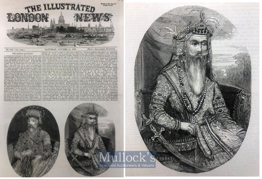 India & Punjab – Maharajah Ranjit Singh of Lahore original antique engraving from the Illustrated London News, showing The King of Delhi, and also of the one eyed Lion of the Punjab - Maharajah Ranjit Singh, incorrectly titled as Maharajah Ghulab Singh of Cashmere. Dated 1857.