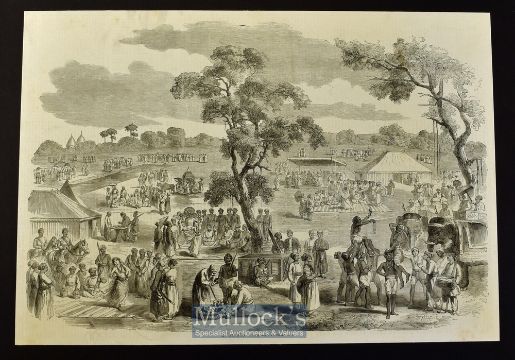 India - A Hindoo Fair original engraving 1858 probably after W. Carpenter 36x25cm laid to card with descriptive text in reverse