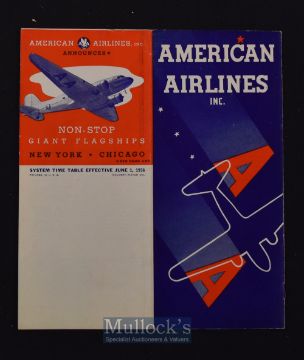 American Airlines 1936 Publication - An 8 page publication advertising their then new Douglas (DC3) Aircraft with 10 photographs of this aircraft plus map of routes. Plus various fares and time tables. Printed on semi-gloss paper size 8” × 9”.