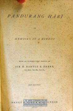 Pandurang Hari Or Memoirs of A Hindoo With an Introductory Preface by S H Bartle E Frere London: Henry S King 1877, A rare novel by William Browne Hockley [1792-1860], published anonymously in 1831 [when it was also translated into German] based on the native life in the Bombay Presidency. This is a new edition with a preface by the Governor of Bombay