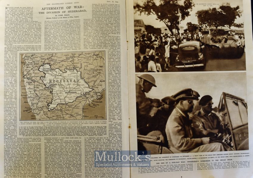 India - The Invasion of Hyderabad - Two Weekly issues of The Illustrated London News covering the invasion and surrender of Hyderabad 25 Sept 1948, 4pp with 13 photographs 2nd Oct 1948, 1pp with 5 photographs (2)