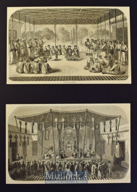 India - Two engravings Fete du Moharrem and Indian Dancers 1857 published in French periodical, probably after Alexse Soltykov both 22x14cm laid to card (2)