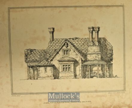 Rural Architecture of a Series of Designs For Ornamental Cottages by P.F. Robinson, Arch’t. 1823 First Edition. 4to, [58]p., 96 lithographed plates, Original half calf, marbled boards, spine tooled in gilt. "The 20 designs include two lodges, five cottages, one double cottage, one group of four attached cottages, four farm houses, two "residences," one parsonage, two alms houses, a dairy, and a boat house and fishing cottage." Each is illustrated in plain, elevation, and view on four or more plates and described in one or more pages of letterpress. Half calf, marbled boards, spine tooled in gilt, size 8¾” × 10¾”. (This was one of the first books featuring plans of homes for the emerging middle classes who wanted a stylish home without the expense of employing an Architect to design one).
