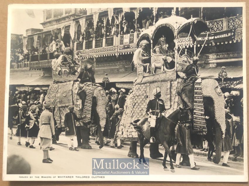 India - Original photo of a Royal Sikh Princes wedding of Yuvaraj Rajbir Singh, Sangrur India - Bride and groom lead the procession with the Maharajas of Patiala & Jind riding on the elephant behind. c1950s Dimensions: 21 x 15.5 cm