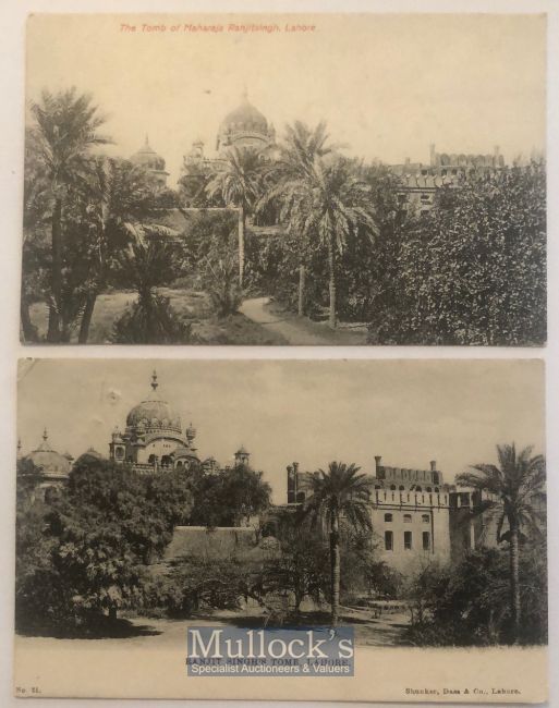 India – Topographical postcards (2) views of the Maharaja Ranjit Singhs tomb or Samadhi Lahore, Punjab. c1900s