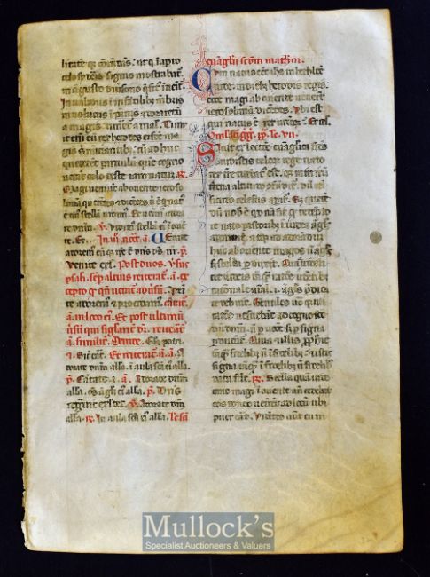 Italy – Large Decorative Breviary Manuscript Leaf on Vellum Circa 1325 - decorative, huge breviary manuscript leaf on vellum, decorated with hand painted initials, written most likely in an Italian scriptorium and text in Latin, size 9” × 13¼”.