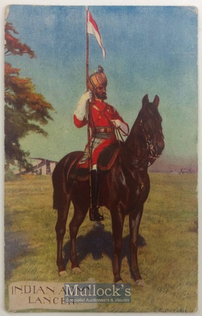 India & Punjab – Indian Army Lancer original antique WWI postcard showing an Indian Army Lancer of the British Indian Army, c1900