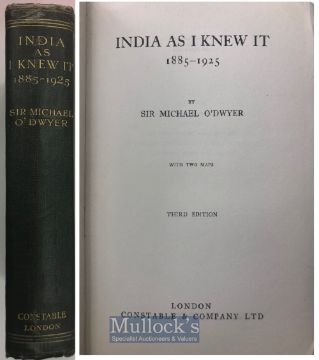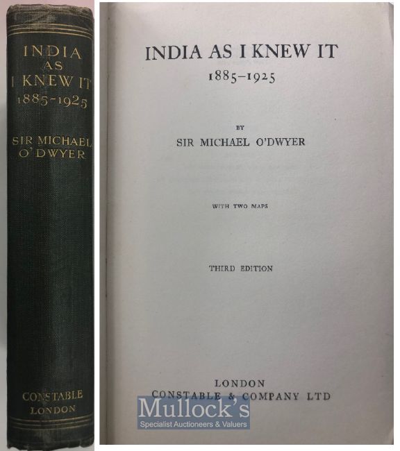 India & Punjab – Sir Michael O’Dwyer & Amritsar Massacre Rare memoirs of Sir Michael O’Dwyer entitled ‘India As I Knew it; London, 1925, good copy in original dark green cloth and gilt titles. A fascinating account of the O’Dwyer’s life whose was Governor of the Punjab, during the Punjab disturbances and the massacre at Jallianwala Bagh, includes life in India, in particular in Punjab, Jullundar, Amritsar, with the Sikhs, the Afghan War, the Hunter Committee, and his sentence and defence of his actions. A detailed account of the massacre which occurred only ten years earlier and also O’Dwyer’s strong backing of General Dyer and his action in shooting upon an unarmed civilian crowd. The author was later shot by a survivor of the Amritsar Massacre, Udham Singh, at Caxton Hall in London in 1940 during the Second Worlds War.