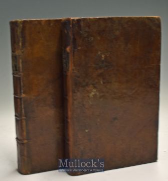 South America - A Voyage To South America by Don George Juan, 1765 Book two volumes The First with 378 pages and 3 fold out plates. The Second with 356 pages and two plates. The book subtitled; “Describing at large The Spanish Cities, Towns, Provinces &c. on that extensive Continent, the Genius, Customs, Manners, and Trade of the Inhabitants; together with the Natural History of the Country. And an Account of their Gold and Silver Mines, Undertaken by Command of His Majesty the King of Spain”, also fine cross referencing index. In original leather binding, each size 5” x 8”.