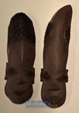 Art Deco Jazz Brand Alarm Clock in cream Bakelite together with a giant Calvin Klein point-of-sale thermometer to launch the C.K Watch Brand. Pair of Biafran (Nigerian Tribe) male genitalia masks in carved and part stained hardwood (used as a fertility device during courting), sizes 23cm in length and 19cm in length approx. Various 50p Coins with 1918 Representation of the People Act’, Battle of Hastings and Benjamin Britten’ in good overall condition, plus leather coin pouch Selection of Collectable Ceramics including Bren Leigh Beech Patt. Bowl, Meakin ‘Vine’ Patt. Platter, Mick Rooney Royal Academy Collectors plate, Royal Vienna Bird Series collectors plate, four advertising jars and Dudson Armorlite Jug, Blue Glass hand blown twin handled vase together with three glasses and a retro textured dish (Qty)