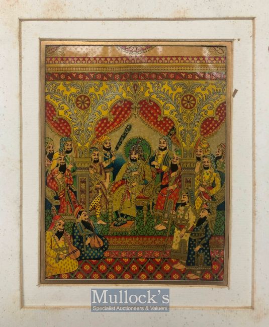 India & Punjab – Maharajah Sher Singh vintage chromolithograph British advertising label print - of Maharajah Sher Singh of the Punjab with his courtiers. She Singh was the second son of Ranjit Singh of Lahore and came to throne of the Punjab in 1841. Measures 13cms x 17cms